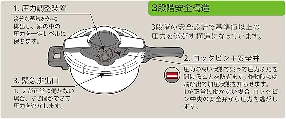 1.圧力調整装置、2.ロックピン+安全弁、3.緊急排出口