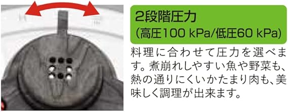 2段階の圧力設定が可能。2段階圧力:高圧100kPa/低圧60kPa。