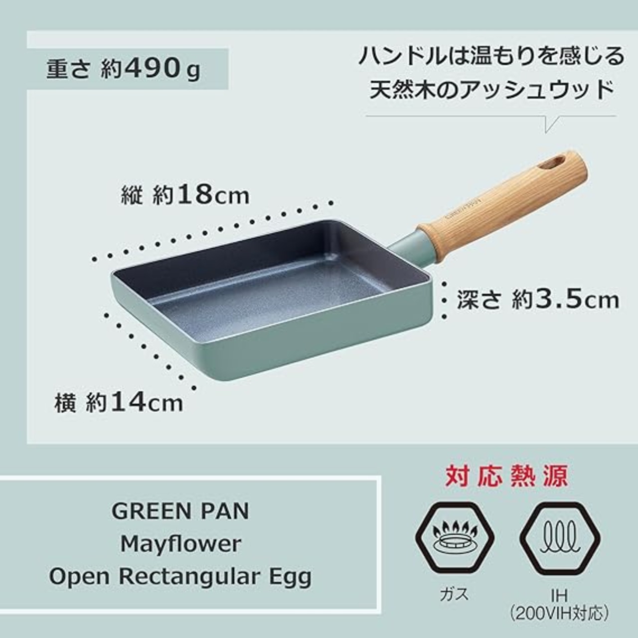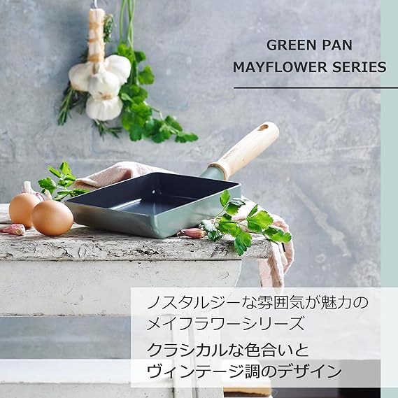グリーンパン GREENPAN エッグパン 玉子焼き器 14x18cm IH ガス 対応 有害物質不使用 PFASフリー セラミックコーティング 【メイフラワー】 こびりつきにくい 汚れが落としやすい 少し深め 天然木ハンドル CC001901-001 a