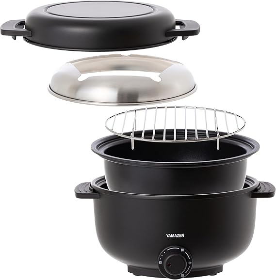 [山善] 電気鍋 グリル鍋 小型 卓上 一人用 5WAY (焼く/蒸す/揚げる/煮る/フォンデュ) デキタテポット 温度調整機能 着脱式 丸洗い可能 ブラック YMCP-S650(B) a