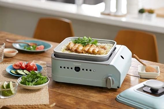 ■カセットボンベが燃料のガス式ホットプレート。ガ ス火ならではのパワーで美味しく調理が可能。