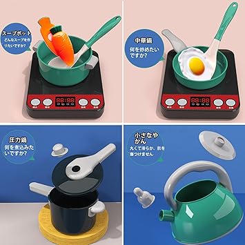 【本物のキッチンシーン】子供たちは音と光の電磁調理器を使ってさまざまな料理を作ることができます。必要に応じて、沸騰水モード、炒めるモード、鍋料理モードを選択します。電磁調理器は、実際のキッチンシーンと同じように、さまざまな効果音を生成す