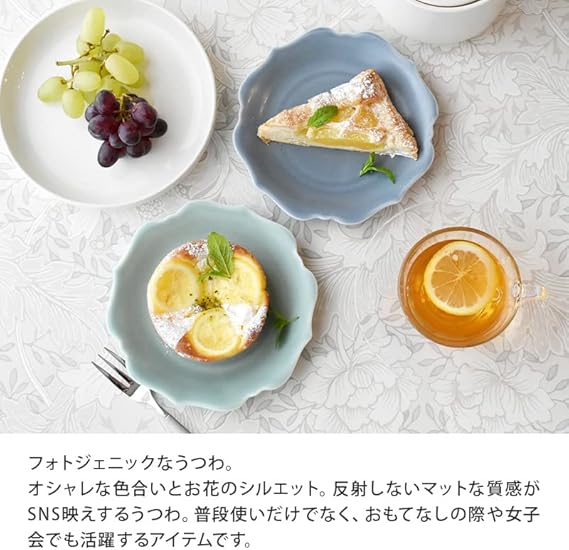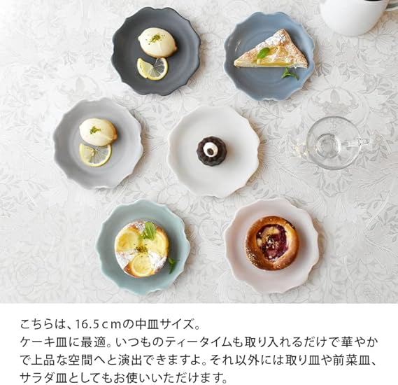 花をイメージした形はテーブルを華やかに彩り、料理も綺麗にみせてくれます。こちらは中皿サイズで取り皿をはじめ、ケーキ皿、おかず皿などにもおすすめ。