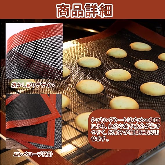 【 メッシュ構造で余分な油を落とす】: クッキングシートはメッシュ加工により、余分な油や水分が抜けやすく、お菓子が簡単に取り出せます。家庭用オーブンで使いやすいサイズのシルパンです。焼き菓子やハード系のパンがサクサク、パリッとした仕上がりになります。