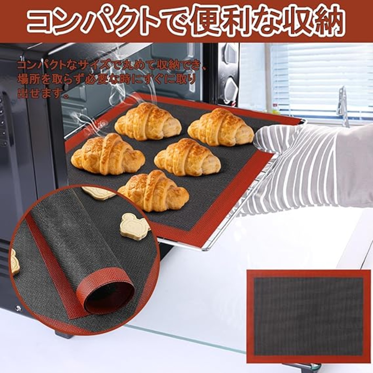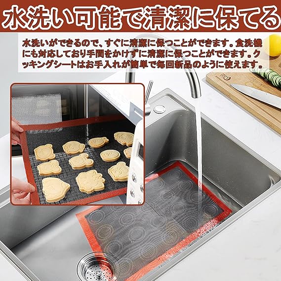 【シルパン クッキングシート】: オーブンだけでなく冷凍庫にも使用でき、幅広い料理に利用できます。お菓子や料理がシートにくっつかないため取り出しやすく、便利です。