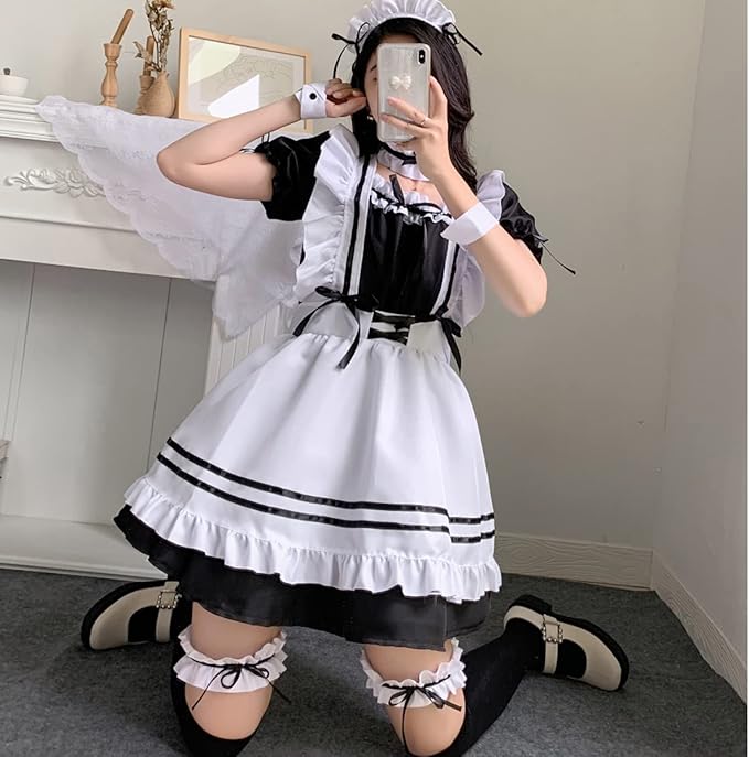 [FULINE] メイド服 セクシー コスプレ衣装 ロリータ レディース エプロン ドレス アリス風 コスチューム 仮装 学園祭 a