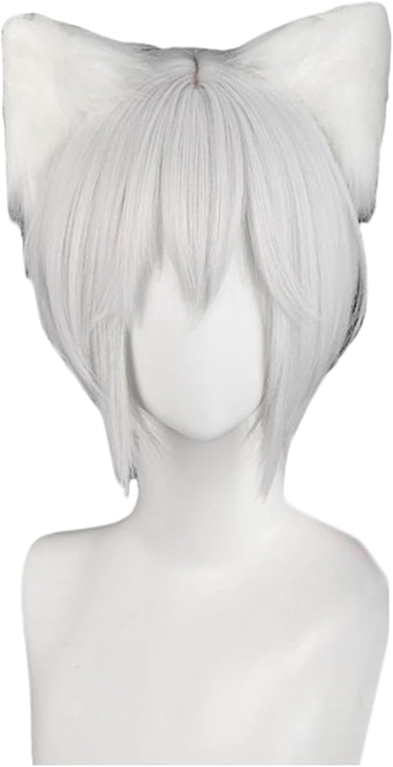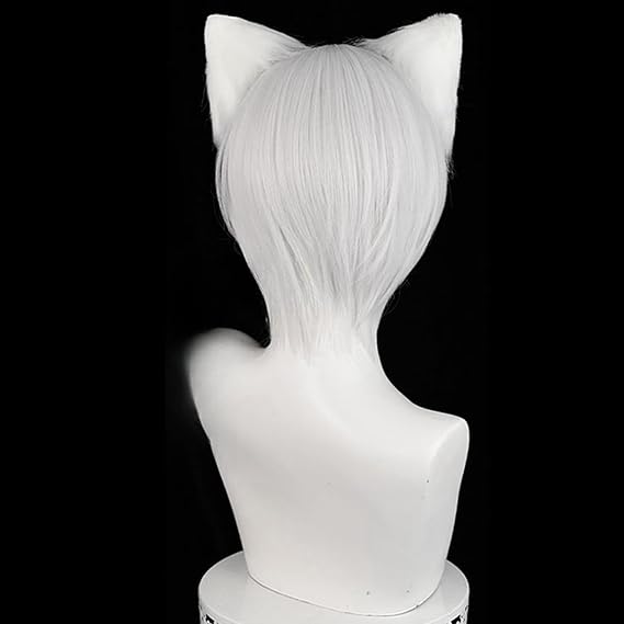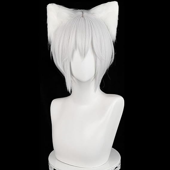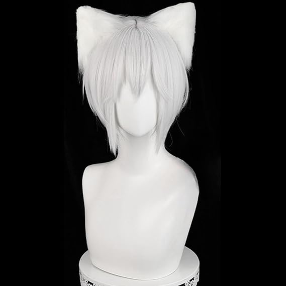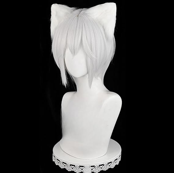 [ラウバオショッピング] コスプレ ウィッグ 巴衛 白髪 耳付き カツラ 耐熱 変装用 コスチューム小物 パーティー ハロウィン 仮装 cosplay wig (巴衛) a