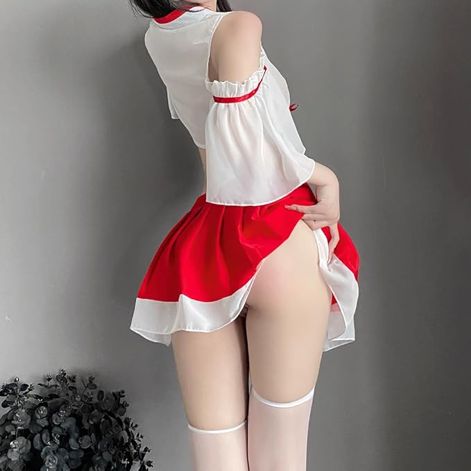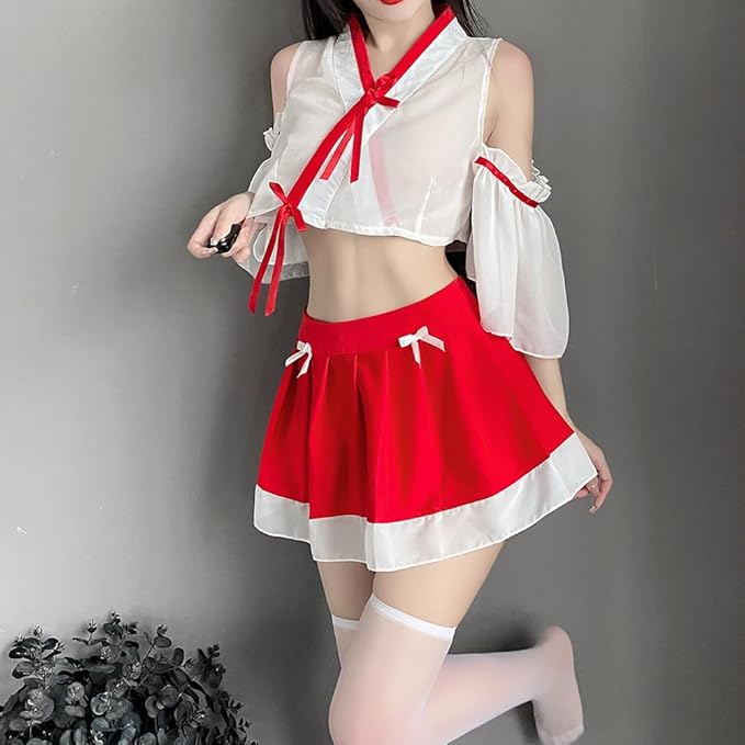 [SHLYMP] 巫女服 和服 巫女 コスプレ セクシー エロ 過激 エッチ な えろい コスチューム ランジェリー 下着 ベビードール みこさん みこ 可愛い かわいい 透け シースルー 神社 レディース お正月 節分 大人 みこ 和風 和装 着物 巫女さん ハロウィン 衣装 仮装 ミニスカート Tバック セット フリーサイズ 赤 アニメ a