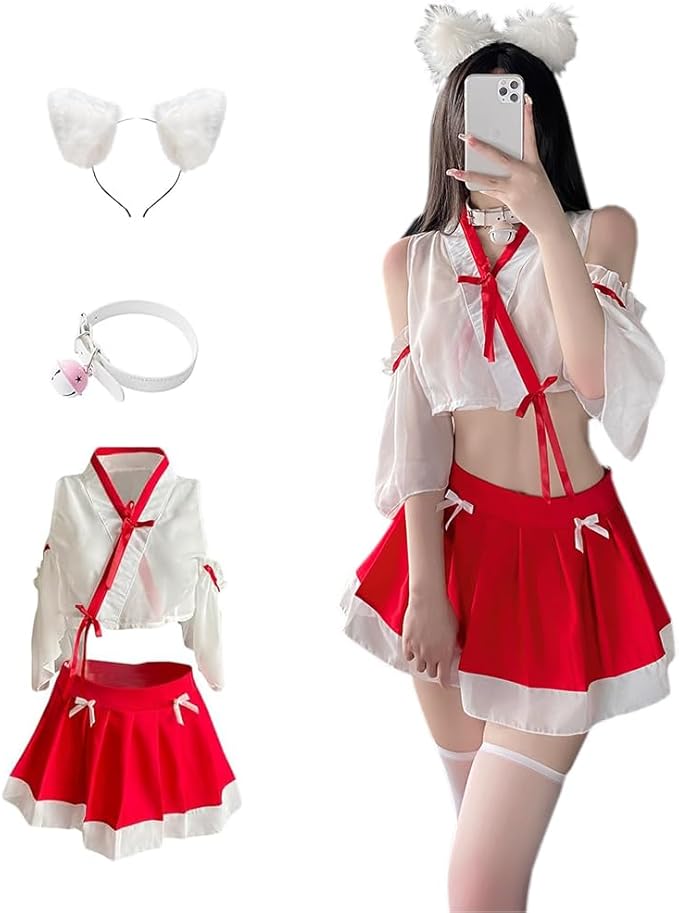 [SHLYMP] 巫女服 和服 巫女 コスプレ セクシー エロ 過激 エッチ な えろい コスチューム ランジェリー 下着 ベビードール みこさん みこ 可愛い かわいい 透け シースルー 神社 レディース お正月 節分 大人 みこ 和風 和装 着物 巫女さん ハロウィン 衣装 仮装 ミニスカート Tバック セット フリーサイズ 赤 アニメ