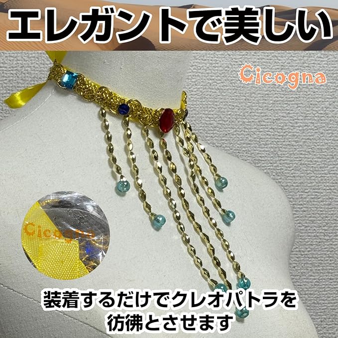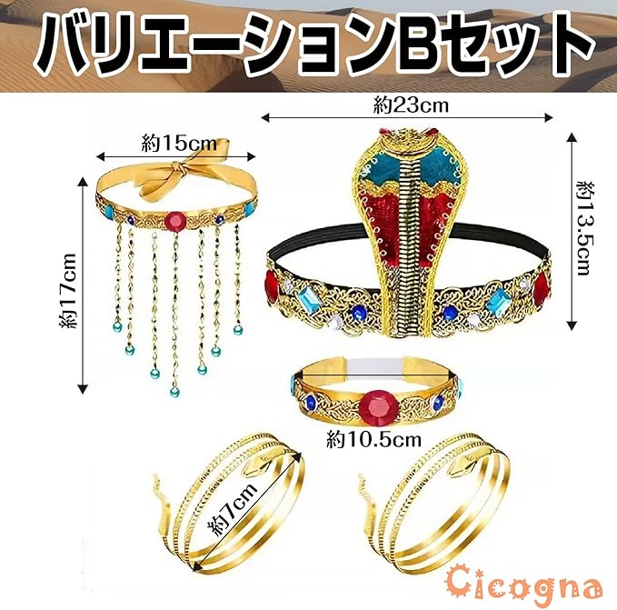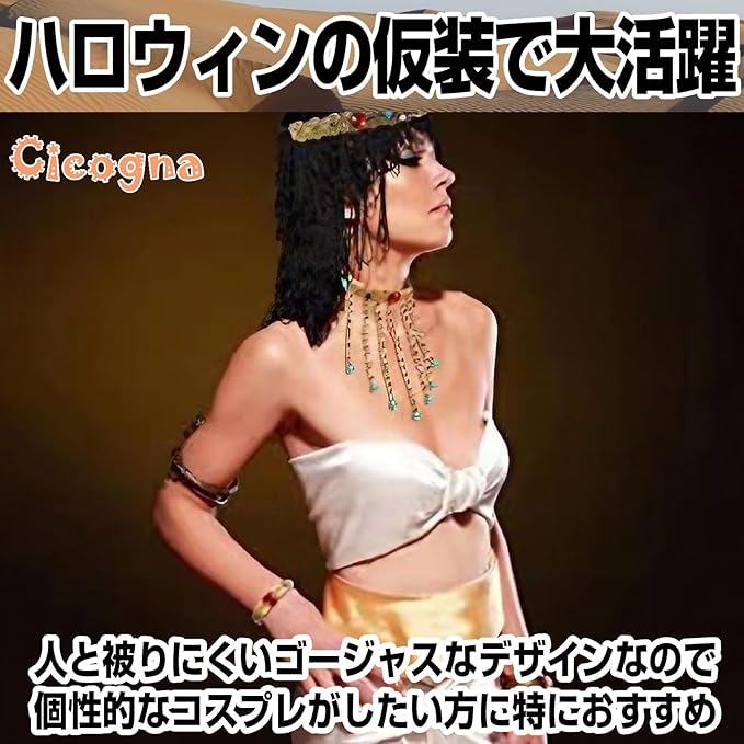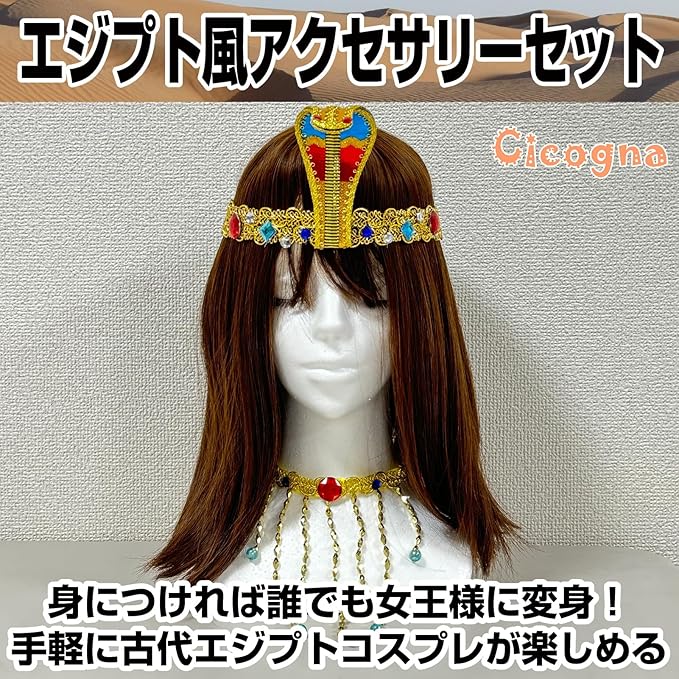 [Cicogna] エジプト コスプレ アクセサリー セット クレオパトラ コスチューム 衣装 ハロウィン 仮装 小物 レディース 女王様 ファラオ カチューシャ 蛇 スネーク ゴージャス