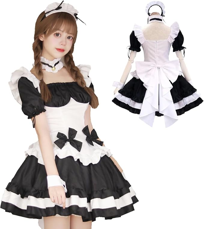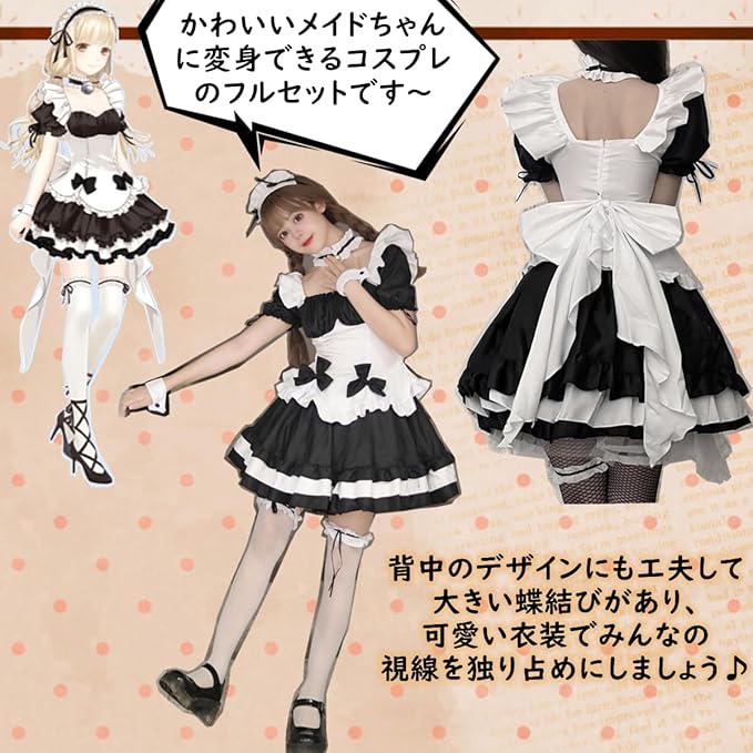 [Abuqino] メイド服 コスプレ 仮装 レディース コスチューム メイド エプロン ロリータ 衣装 可愛い コスプレ 制服
