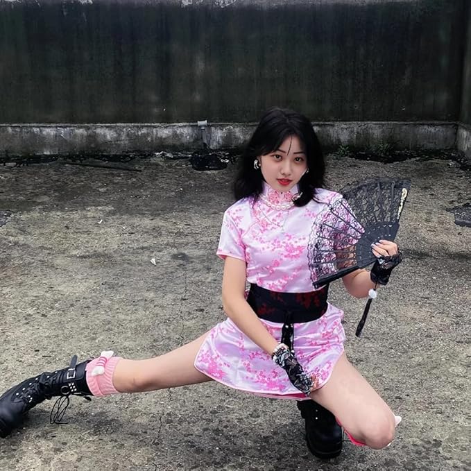 [Limspace] チャイナドレス ミニ チャイナ服 レディース サテン ワンピース 半袖 膝上 梅花柄 龍と鳳凰柄 ファッション エレガント 旗袍 ダンス 舞台衣装 パーティードレス 結婚式 ハロウィン コスプレ衣装