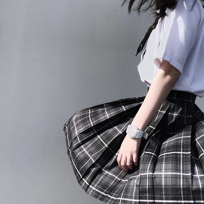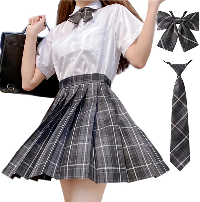 [GEAHOL] 制服 スカート 女子高生 プリーツスカート 3点セット 蝶ネクタイ&ネクタイ コスプレ ハイウエスト 学生服 洗濯機OK 調整可能ウエスト 学園祭 文化祭 チェック柄