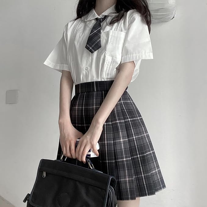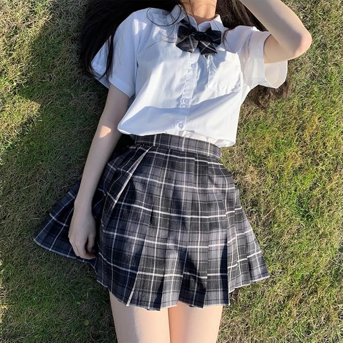 [GEAHOL] 制服 スカート 女子高生 プリーツスカート 3点セット 蝶ネクタイ&ネクタイ コスプレ ハイウエスト 学生服 洗濯機OK 調整可能ウエスト 学園祭 文化祭 チェック柄 a
