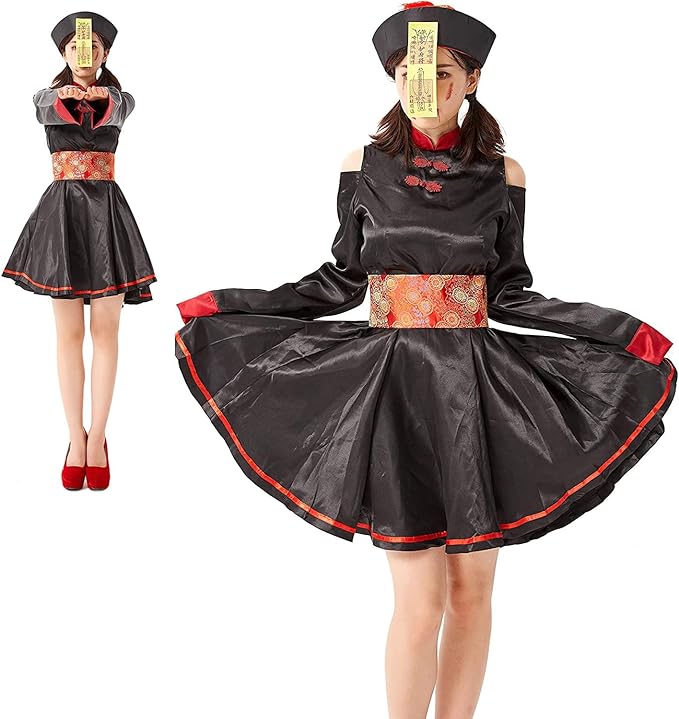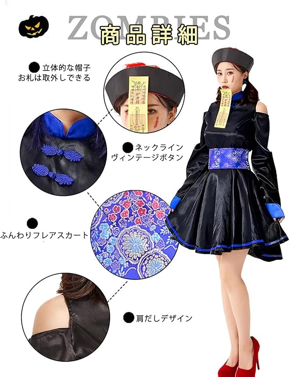 [SVNVIOZ] ハロウィン コスプレ キョンシー 仮装 コスチューム 肩出し ゾンビ 大人 レディース 女性用 衣装 ワンピース 中国風 人気 変装パーティー イベント用 文化祭 プレゼント