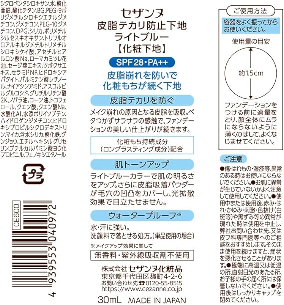 セザンヌ 皮脂テカリ防止下地 ライトブルー 30ml テカリにくい 崩れにくい 化粧下地 単品 a
