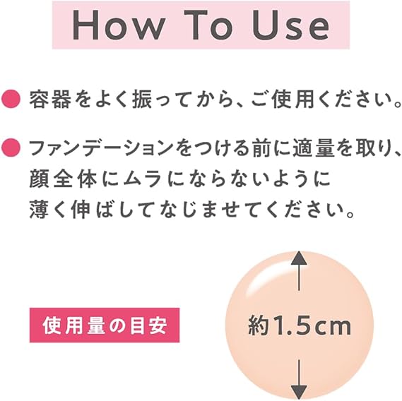 全成分:シクロペンタシロキサン、水、酸化亜鉛、BG、酸化チタン、PEG-9ポリジメチルシロキシエチルジメチコン、ジメチコン、PEG-10ジメチコン、シリカ、含水シリカ、トリフルオロアルキルジメチルトリメチルシロキシケイ酸、アセチルヒアルロン酸Na、ローマカミツレ花油、セージ葉エキス、トコフェロール、グリチルリチン酸2K、水添ポリイソブテン、ポリメチルシルセスキオキサン、ヒドロキシプロピルシ