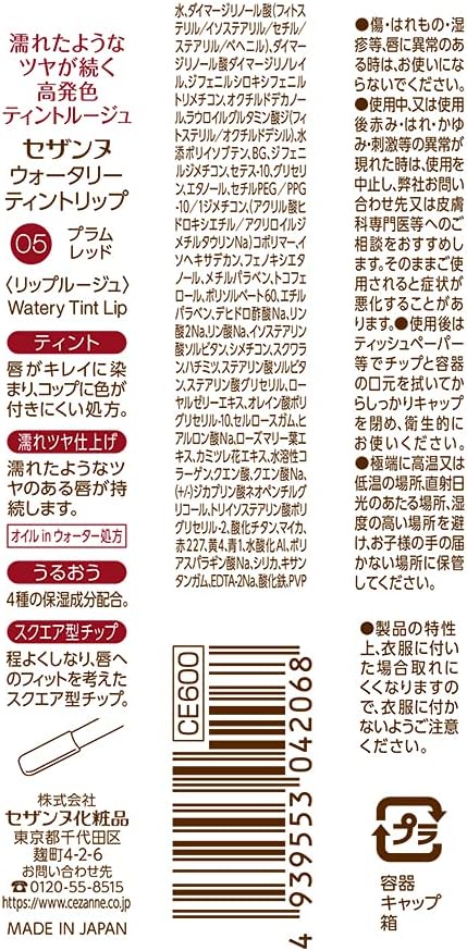 セザンヌ ウォータリーティントリップ05 プラムレッド 4.0g ティント処方 ツヤ長時間持続 a