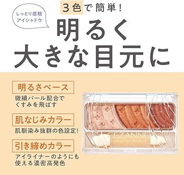 3色で簡単に明るく大きな目元になるアイシャドウ。