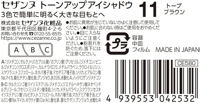 セザンヌ トーンアップアイシャドウ 11 トープブラウン 2.7g 3色アイシャドウ チップ付き a