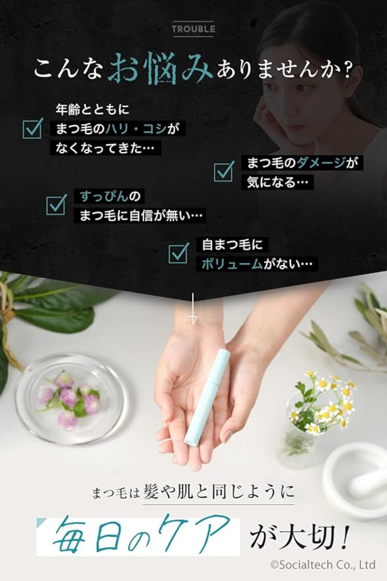 【まつ毛の保湿・補修ケア】つけまつげ、まつげパーマ、エクステ、ビューラーなど日々のダメージを受けたまつ毛に潤いを与え、ハリ・コシ・ツヤの