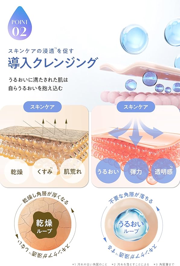 【毛穴ケア*¹に着目したクレンジングジェル】高機能還元水「クリアドロップ*²」をベースに使用。肌との親和性が高く、メイクを浮かび上がらせやすくします。毛穴に蓄積した汚れや黒ずみ*³をこすらず吸着除去し、透明感*⁴のある素肌へ導きます。 *1毛穴の汚れを落とすこと*2整肌洗浄作用*3汚れや古い角質による*4洗浄効果による