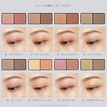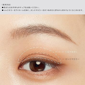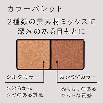 ツヤとマット、2つの質感で、肌になじみながらも目もとをナチュラルに大きく仕上げる。(なめらかなツヤを放つ「シルクカラー」と、ぬくもりのあるマットな「カシミヤカラー」の2種をセット。異なる質感を組み合わせることで深みを演出。)(肌なじみのよいゴールドパール配合)