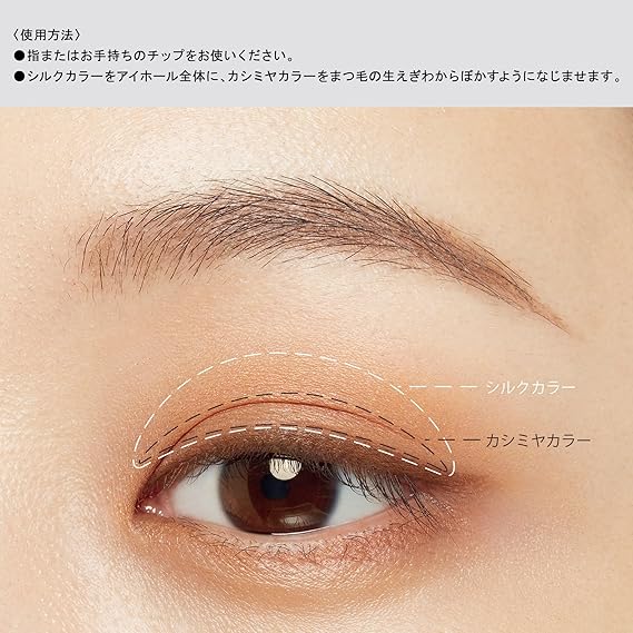 ツヤとマット、2つの質感で、肌になじみながらも目もとをナチュラルに大きく仕上げる。/なめらかなツヤを放つ「シルクカラー」と、ぬくもりのあるマットな「カシミヤカラー」の2種をセット。/異なる質感を組み合わせることで深みを演出。/肌なじみのよいゴールドパール配合
