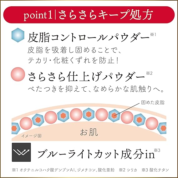 完成美、つづく。化粧もち美容液パウダー。ふわっと、化粧もち。美容液UVパウダーが新登場。