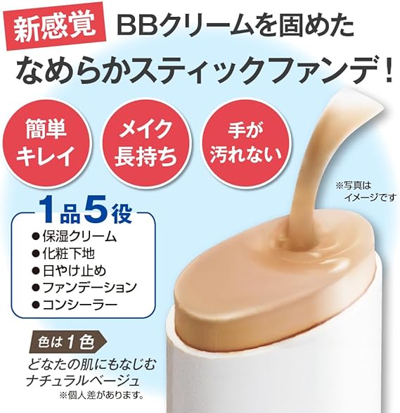 レクチュア クリーミーステイBBファンデ 厚みのある大きなスポンジつき 【日本製】 スティックファンデーション クリームファンデーション カバー力 落ちない 崩れにくい 密着感 厚塗り感なし 手が汚れない ウォータープルーフ SPF50+ PA++++ BBスティック 74814 a