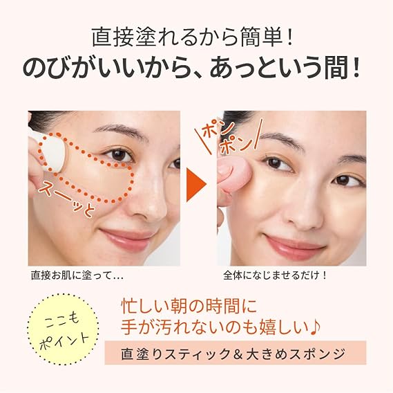 新感覚!クリームファンデーションを固めたなめらかスティックファンデ。きれいが続く!カバー力とうるおいが落ちにくい直塗りファンデーション。クリ