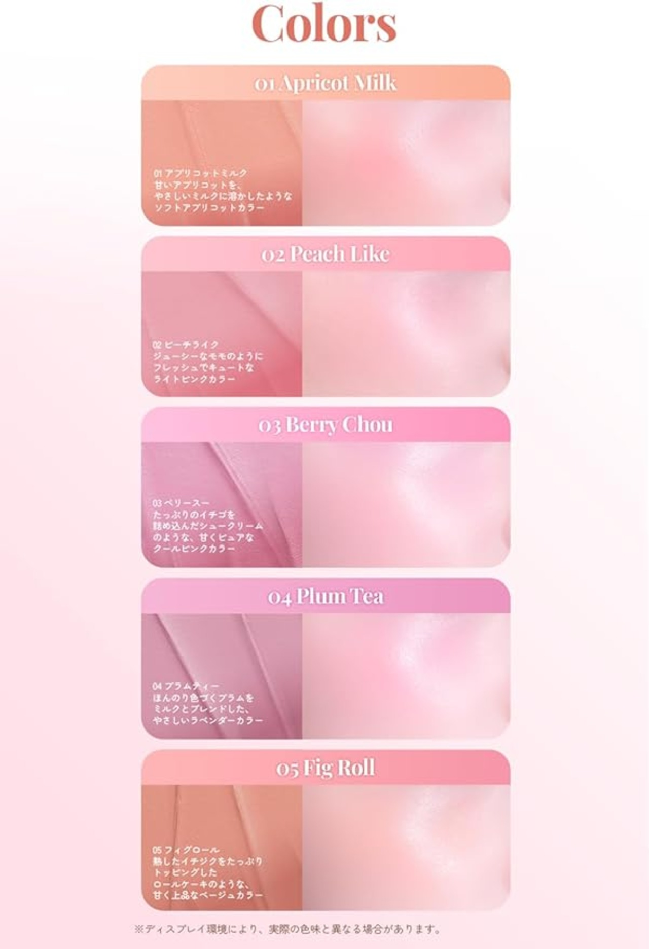 【パーソナルカラーに合わせた5種のカラー展開】FORENCOSのクリームチークは、パーソナルカラー別に選びやすい馴染みの良いカラー展開が魅力。コーラルピンクやローズベージュなどトレンド感のある色味で、ナチュラルメイクから華やかなスタ