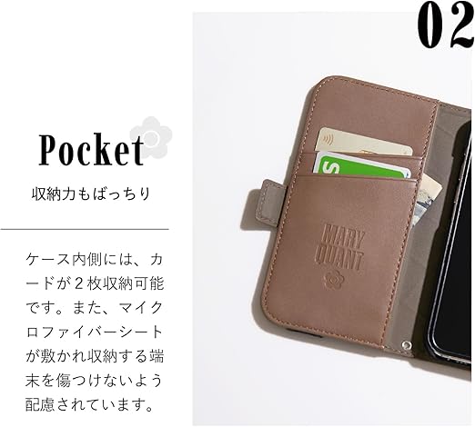 MARY QUANT マリークワント iPhone 16e 用 スマホケース 手帳型 DAISY PATCH QUILT BOOK TYPE CASE レディース グレージュ a
