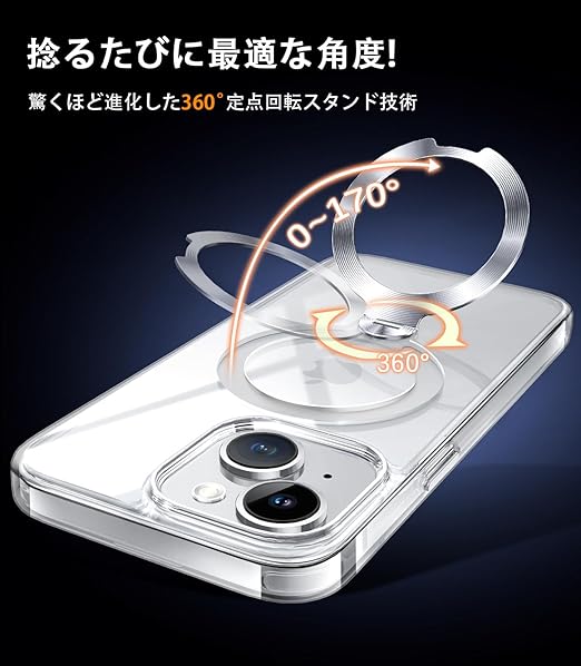 【唯一無二・360°回転CD スタンド】ZapNet iPhone 15 用 クリア ケース Magsafe 対応 [定点スタンド・超絶安定性][本体を再現・極透明]ストラップホール付き マグセーフ ワイヤレス充電対応 黄変防止 米軍MIL規格取得・耐衝撃 アイホン15 ケース マホケース15 人気 6.1インチ(クリア) a