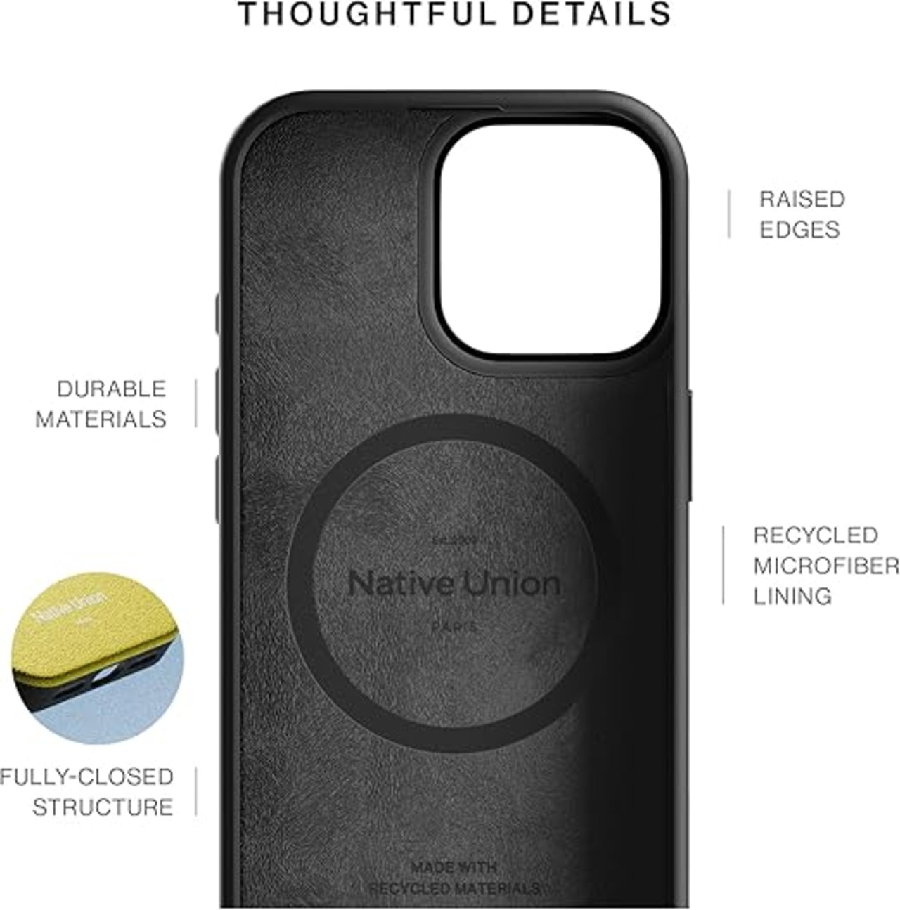 Native Union Active Case ? 内蔵マグネット付きMagSafe対応 ? 頑丈なデザイン ? リサイクル素材 ? 最大10フィート/3メートルの落下保護を備えた超耐久性でiPhone 15 Pro Max用(ブラック) a