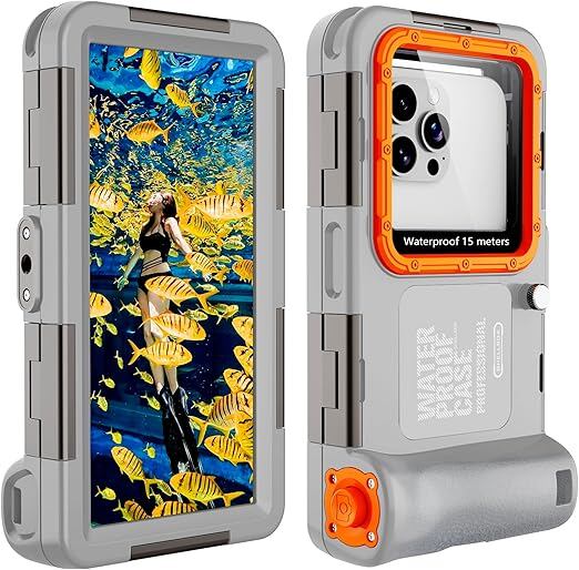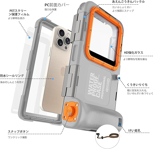 【2025新登場】潜水用ケース iphone 水中撮影 ケース 防水 phone スマホ用 水中撮影 写真 IP68標準防水レベル 水深さ15mで潜水 水泳 ポーチ お風呂 海水浴 夏フェス 温泉 お釣り ストラップ付きL款 iphone専用(グレー+オレンジ) a