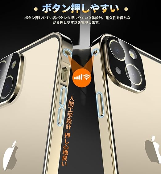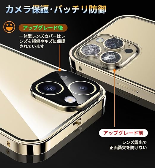 NIANGUO【ロック機能付き・自動ポップアップボタン】 iPhone15 用 ケース クリア ストラップホール付き【両面強化ガラス】 9H硬度 【一体型レンズ保護】 アイフォン15 カバー アルミバンパー メタルフレーム 耐衝撃 傷防止 高感度タッチ 薄型 軽量 ワイヤレス充電対応 いphone15 用 ケース 6.1インチ(ゴールド) a