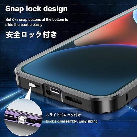 【安全ロック付き】安全ロックでケースの 前後パーツをしっかり固定、万が一落下してもケースが分離して携帯がケースから飛び出す心配なし