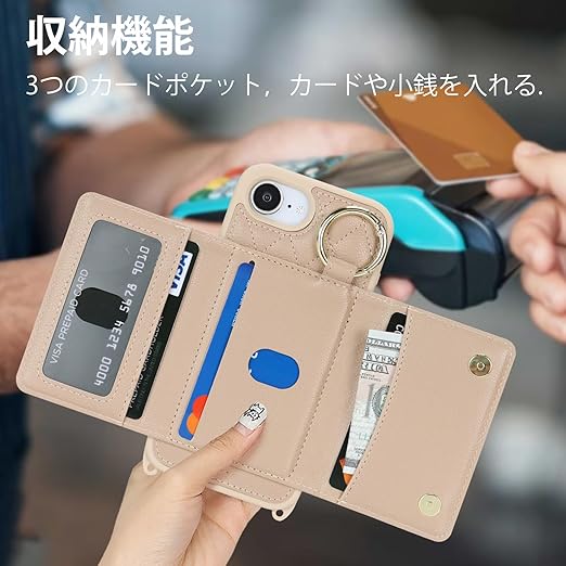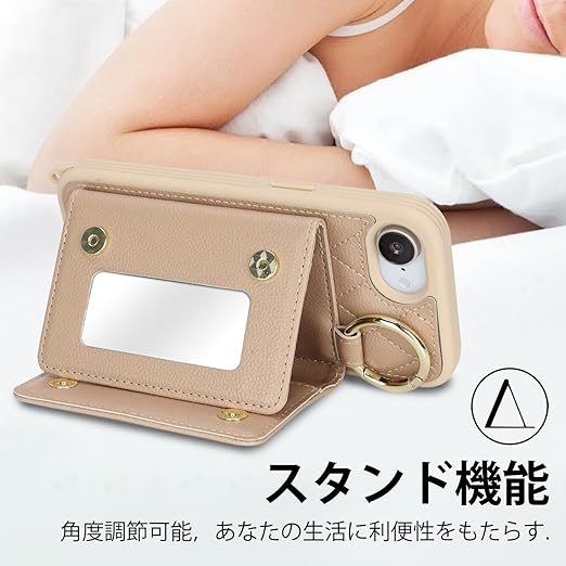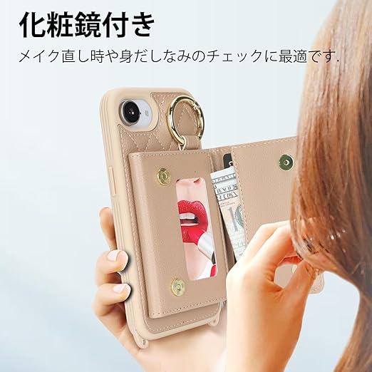 DEYHU 対応 iPhone 16e ケース ショルダー いphone16e ケース カード収納 鏡 肩掛け 斜めかけ スマホショルダー アイフォン16e ストラップ付き 耐衝撃 調節可能な 携帯ケース - オフホワイト a