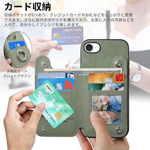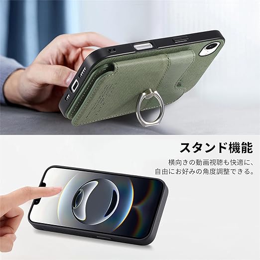 iPhone 16e ケース 手帳型 アイフォン 16e スマホケース あいふおん16eケース リング付き iphone16e 携帯ケース 耐衝撃 いphone16e 手帳型ケース 背面 カード収納 アイホン16e スマホカバー 財布型 カメラ保護 スタンド機能 PUレザー 薄型 RFIDブロッキング 360°回転 TPU おしゃれ iPhone16e 2025 6.1インチ対応 グリーン a