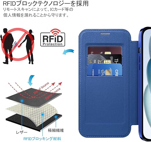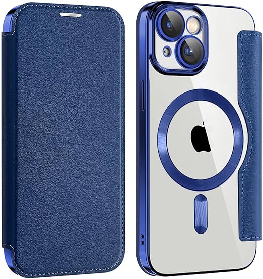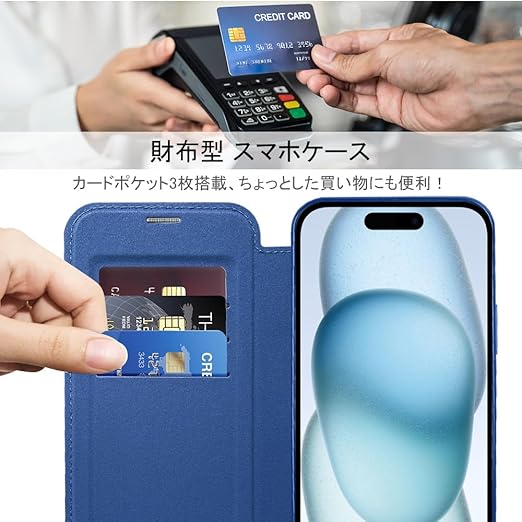 【REHOOF】iPhone 15 ケース 手帳型 magsafe対応 6.1インチ 背面 透明 クリア 財布型 アイフォン 15 ケース マグセーフ 手帳 ワイヤレス充電対応 カード入れ PU革 レザー スマホケース 軽量 薄型 防塵 耐衝撃 全面保護 スマホカバー(ダークブルー) a