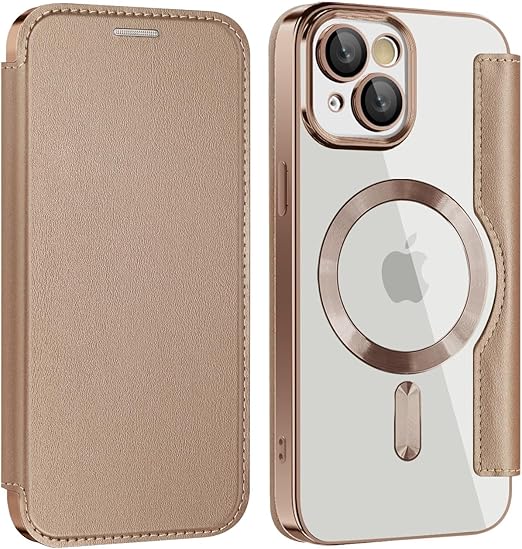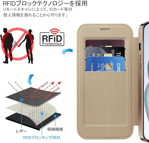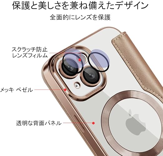 【REHOOF】iPhone 15 ケース 手帳型 magsafe対応 6.1インチ 背面 透明 クリア 財布型 アイフォン 15 ケース マグセーフ 手帳 ワイヤレス充電対応 カード入れ PU革 レザー スマホケース 軽量 薄型 防塵 耐衝撃 全面保護 スマホカバー(チタンゴールト) a