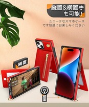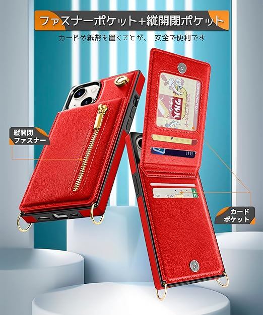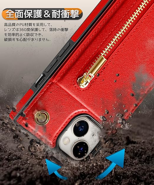 YIHARA iphone 15 ケース手帳型 iphone 15 スマホ ケース 財布型 iPhone 15 適用 携帯ケース 肩掛け 首かけ 斜めがけ ショルダー アイフォン15ケース手帳型 背面 カード収納 ストラップ付き 上下開 長さ調整可能 レッド a