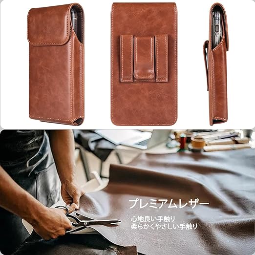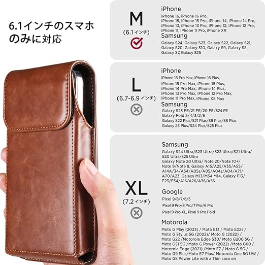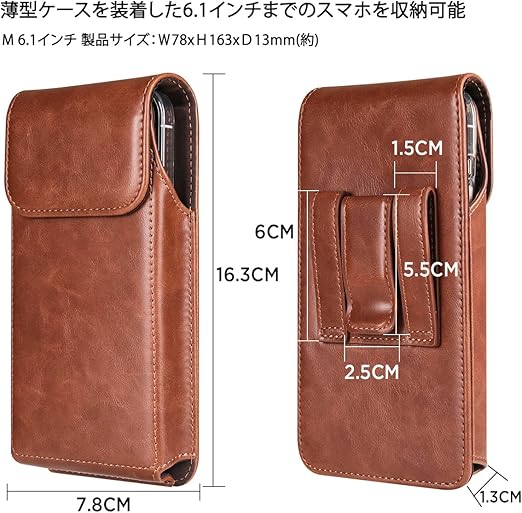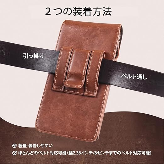 Miimall iPhone 用スマホ ベルトケース ホルダー 縦 6.1インチのスマホ対応 Galaxy 用スマホポーチ ベルトポーチ メンズ iPhone 16 15 14 13 12 11 Pro iPhone XR Galaxy S24 S23 S22 S21 S20 S10 S9 S8 S7対応 ライトブラウン a