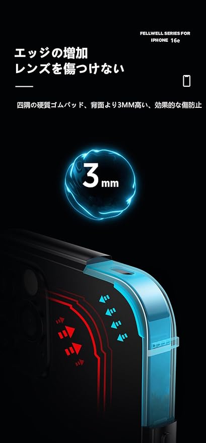 【レンズ保護デザイン】四隅のフチが高く設計されているので、平らな場所に置いたときにスクリーンやカメラレンズが擦れたり、傷ついたりするのを効果的に防ぐことができます。