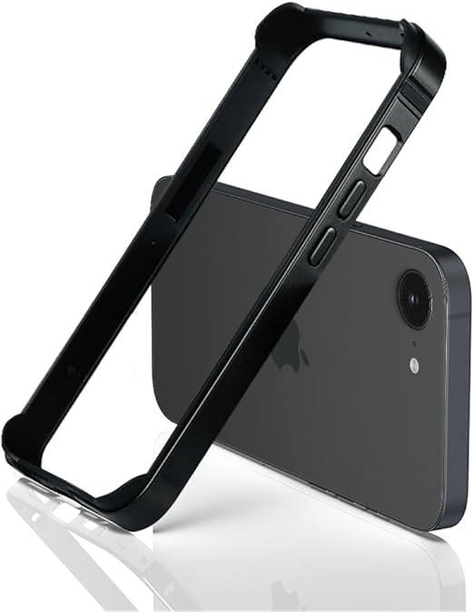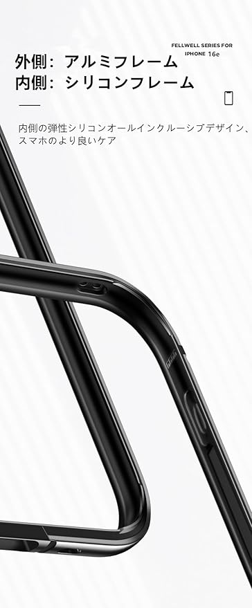 【YMXPY】iPhone16e アルミバンパーケース メタル+シリコンフレーム 二重構造 レンズ保護 軽量 ストラップ穴 耐衝撃 サイドバンパー (ブラック, iPhone16e) a