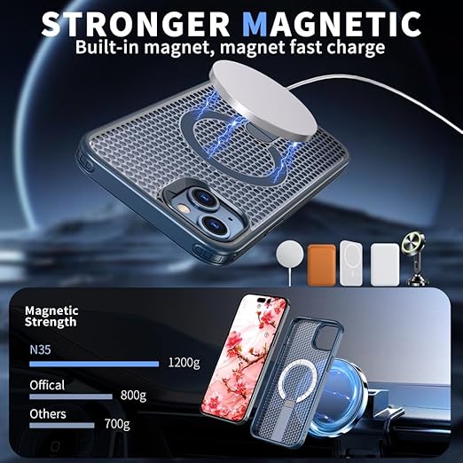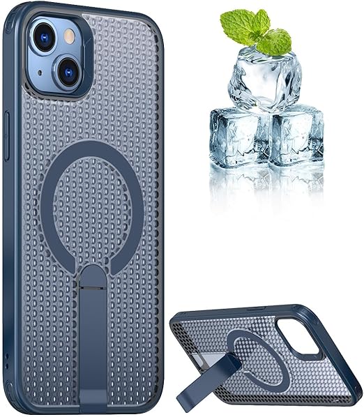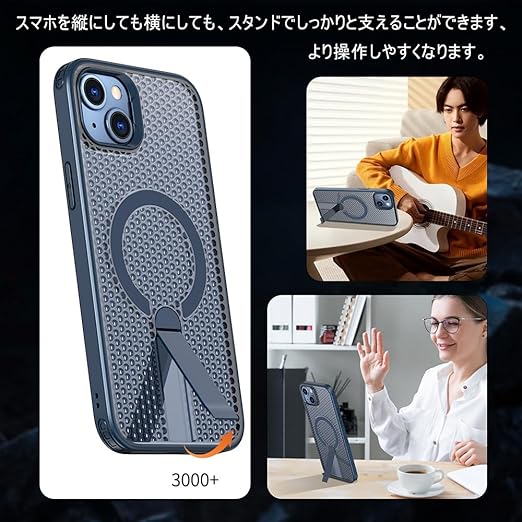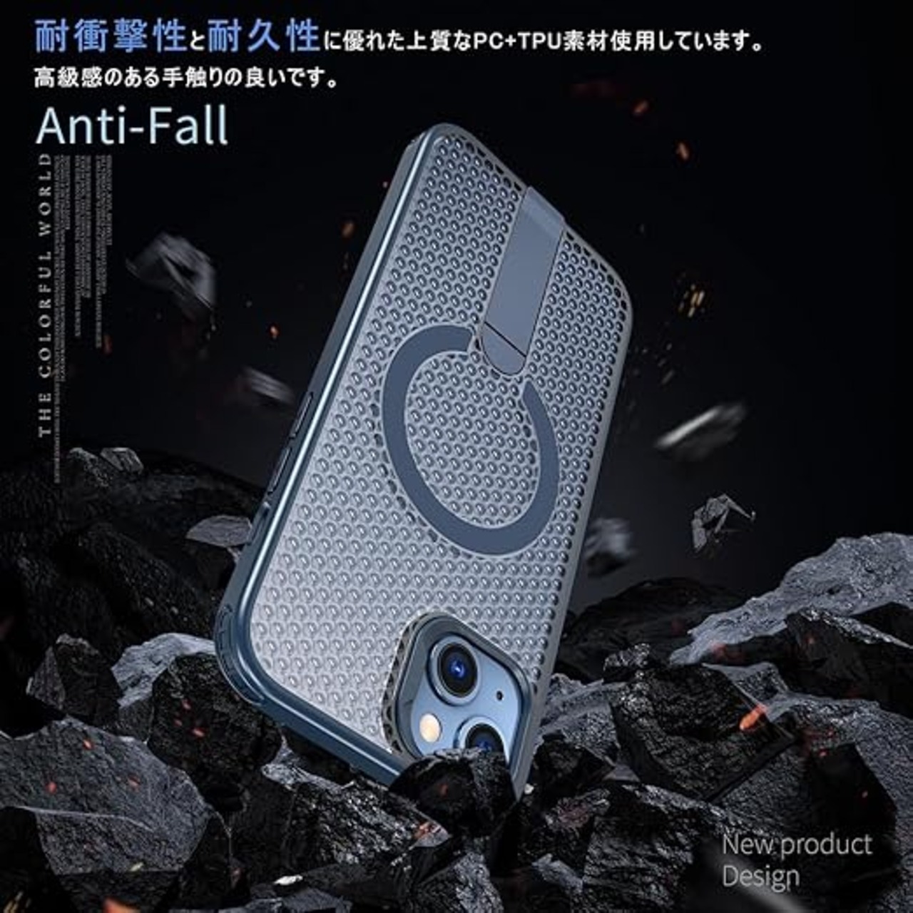 YUZOR for iPhone 15 Plus ケース 冷却 放熱 メッシュ スマホケース MagSafe対応 スタンド付き アイフォン15 Plus カバー 滑り止め 指紋防止 耐衝撃 米軍MIL規格取得 ストラップホール付き 6.7インチ (iPhone15plus 紺色) FX-15plus-lan a