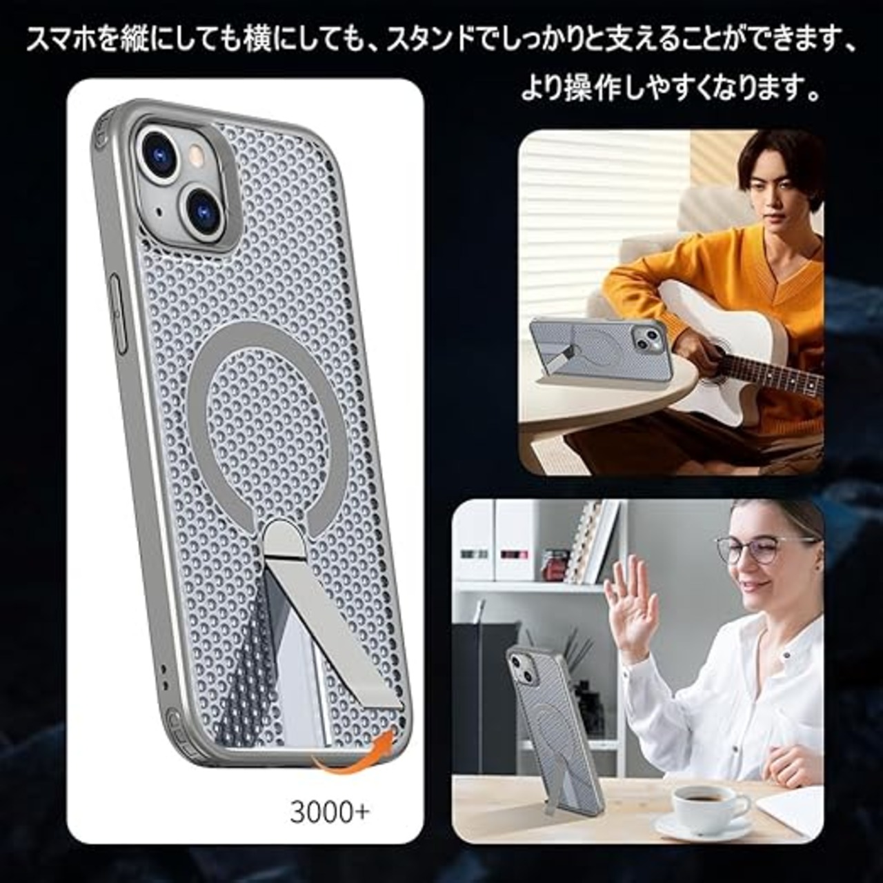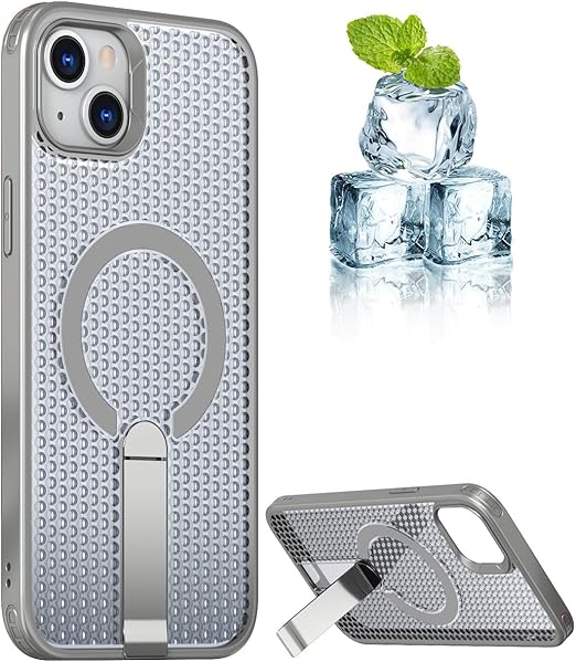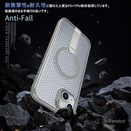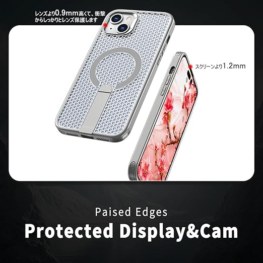 YUZOR for iPhone 15 Plus ケース 冷却 放熱 メッシュ スマホケース MagSafe対応 スタンド付き アイフォン15 Plus カバー 滑り止め 指紋防止 耐衝撃 米軍MIL規格取得 ストラップホール付き 6.7インチ (iPhone15plus 灰) FX-15plus-hui a