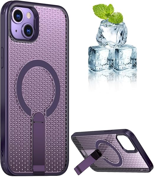 YUZOR for iPhone 15 Plus ケース 冷却 放熱 メッシュ スマホケース MagSafe対応 スタンド付き アイフォン15 Plus カバー 滑り止め 指紋防止 耐衝撃 米軍MIL規格取得 ストラップホール付き 6.7インチ (iPhone15plus 紫) FX-15plus-zi a