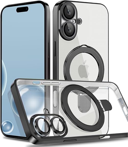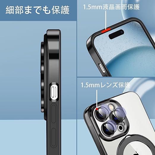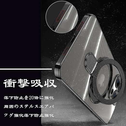 MuZiF iPhone 16 用 ケース MagSafe対応 リング付き クリア メッキ加工 カバー 車載ホルダー対応 多機能 レンズ保護 薄型軽量 耐衝撃構造 透明柔らかいTPU アイフォン16 用 磁気カバー クリアケース(iPhone 16用,ブラック) a